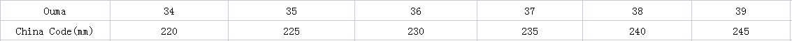 - Black: Sizes 35, 36, 37, 38, 39, 40